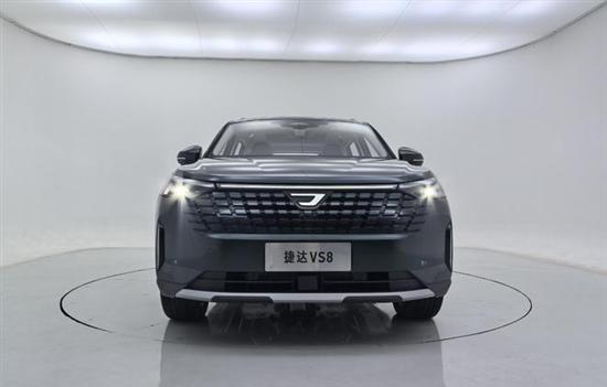 捷达VS8采用全新“霸王战甲”设计语言,前脸配备无边界造型的进气格栅,立体化的设计向两侧不断延展,前包围两侧设计有黑色装饰件,前唇下侧加入银色装饰件,两侧有进气口,整体更具有时尚感。同时,搭配贯穿式LED灯带与发光LOGO,让新车的视觉宽度显著提升。新车提供锰石黑、极地白、星河灰、曜石绿四款配色。