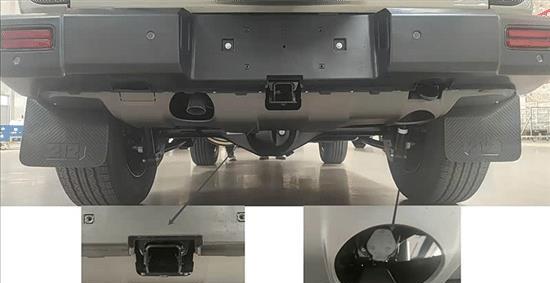 车尾部分,新车还是采用外挂式备胎和侧开尾门设计,尾门上有品牌名称和车型标识。另外,该车还具备拖挂资质,准拖挂总质量为2500kg,并且提供电连接头。